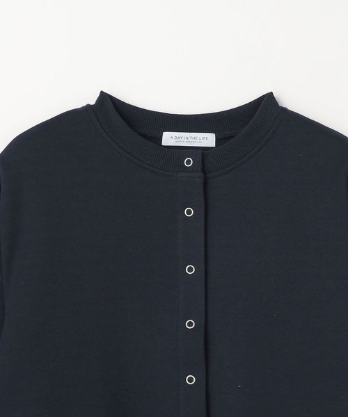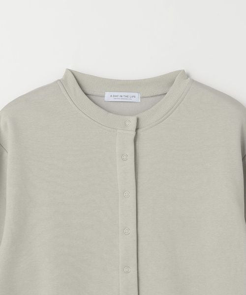 フロントのボタンを留めるとプルオーバー風の着こなしも楽しめます。