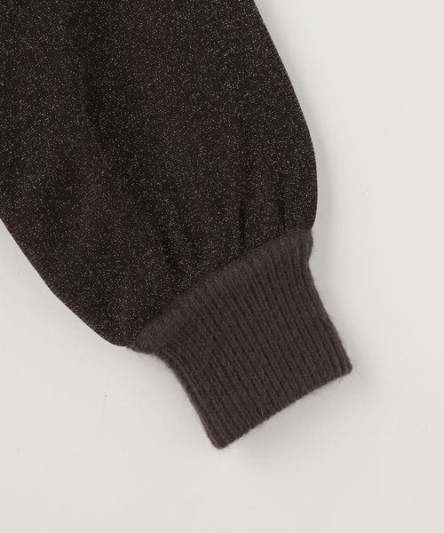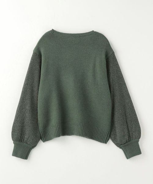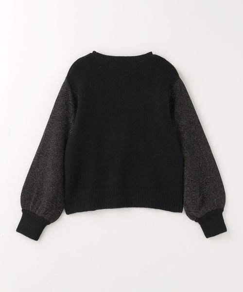 袖にラメ入りのチュールを重ねたクルーネックニット。