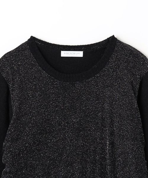 シンプルなニットワンピースにキラキラとしたラメ入りのチュールを重ねました。