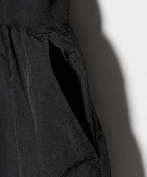 カット×ナイロン ギャザーワンピース ブラック <A DAY IN THE LIFE>