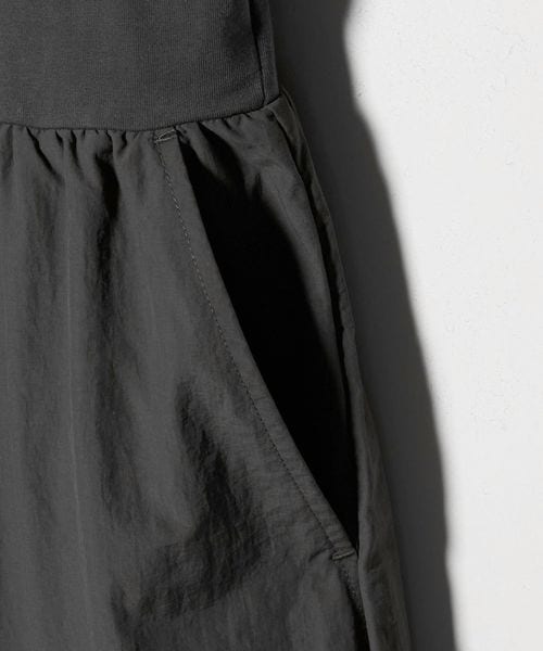 カット×ナイロン ギャザーワンピース ダークグレー <A DAY IN THE LIFE>