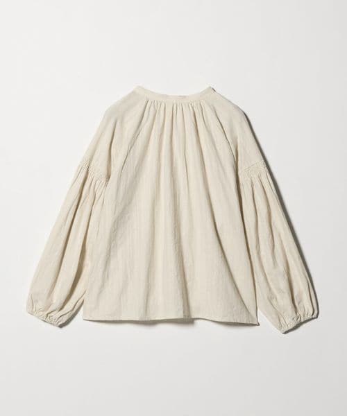 共布の丸紐とシャーリングを施したギャザースリーブがポイントです。