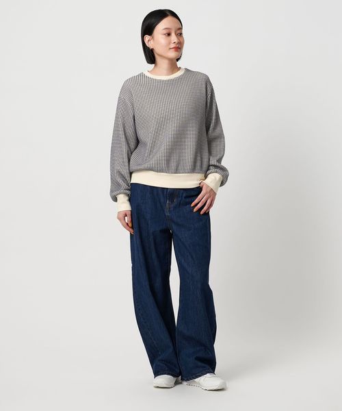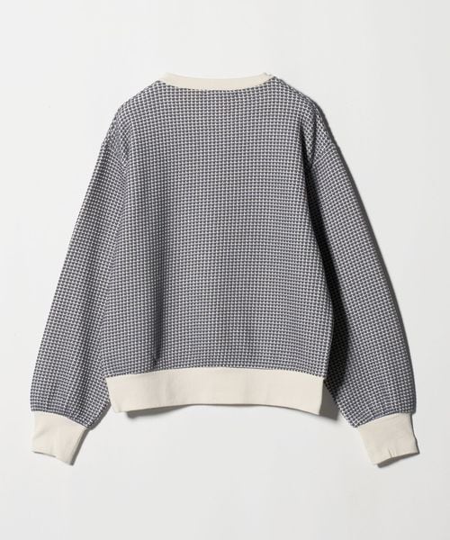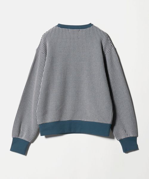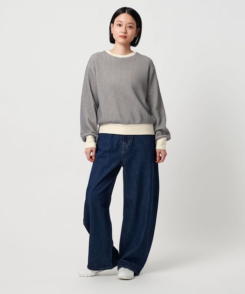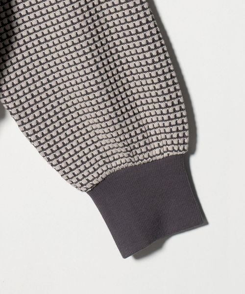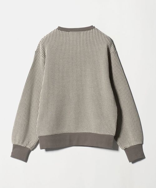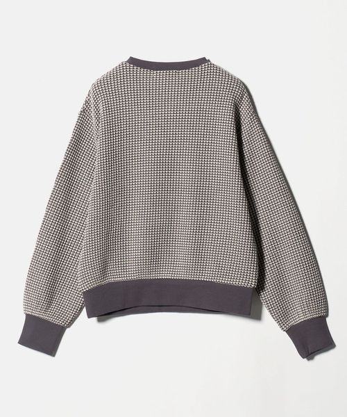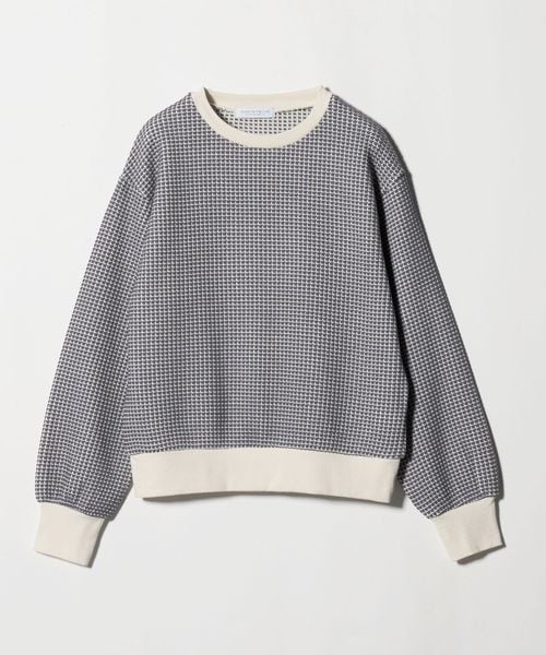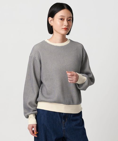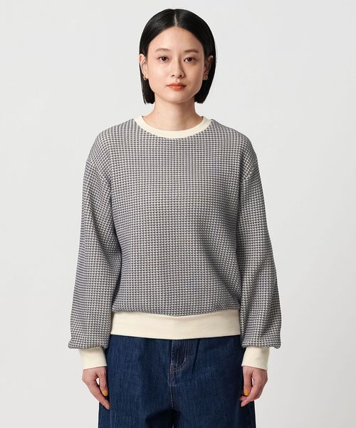 素材の表情を生かしたシンプルなプルオーバーで、細かな柄と無地リブがアクセントに。