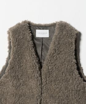 ふんわりとランダムにカールしたフェイクファーのベスト。