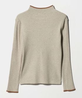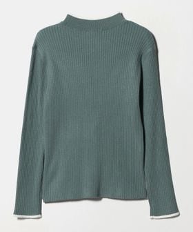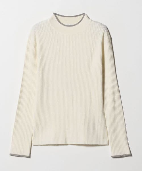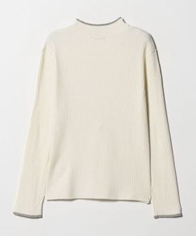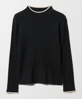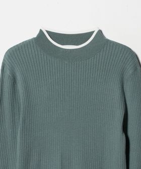 襟と袖口の配色ラインがポイントのハイネックニット。