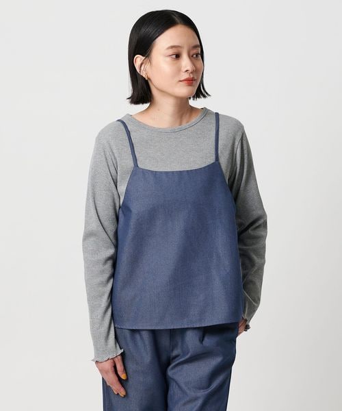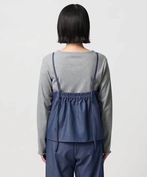 デニムライク素材のキャミソールとパンツをセットにしました。