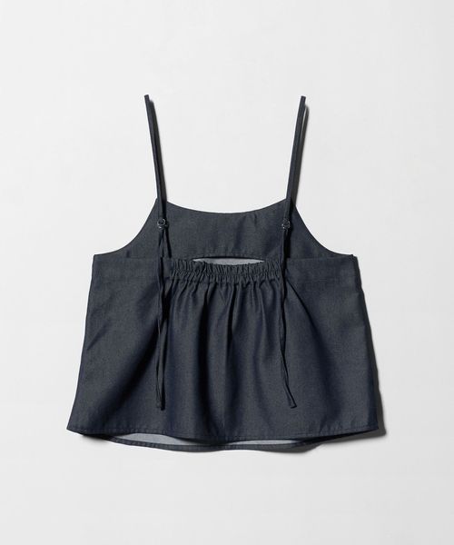 キャミソールは長めに垂らしたストラップがポイントで、バックスタイルにもこだわったデザインです。