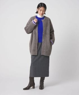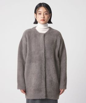 ふわふわタッチのフェザーヤーンを使用したニットコート。