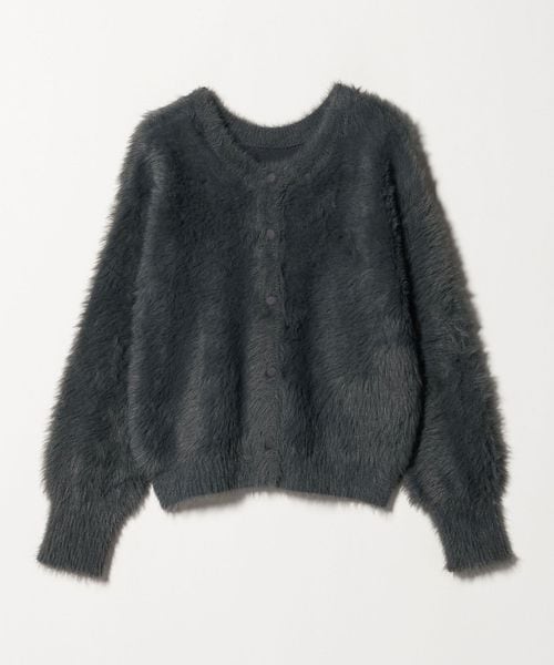 ボリューミーなふわふわのフェザーヤーンが目を惹くクルーネックカーディガン。