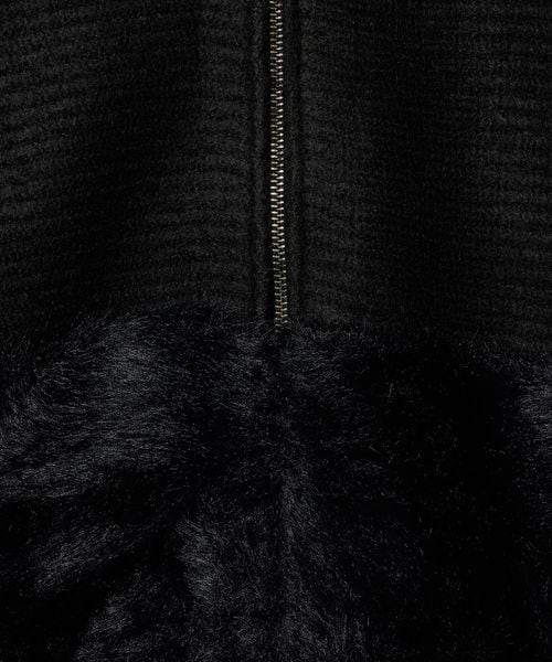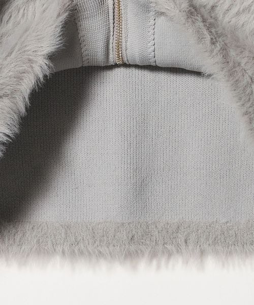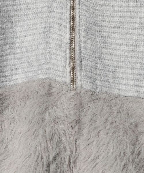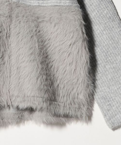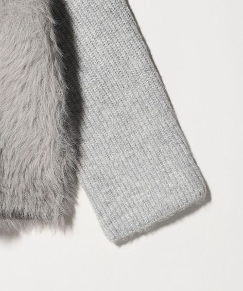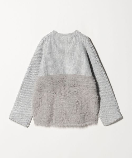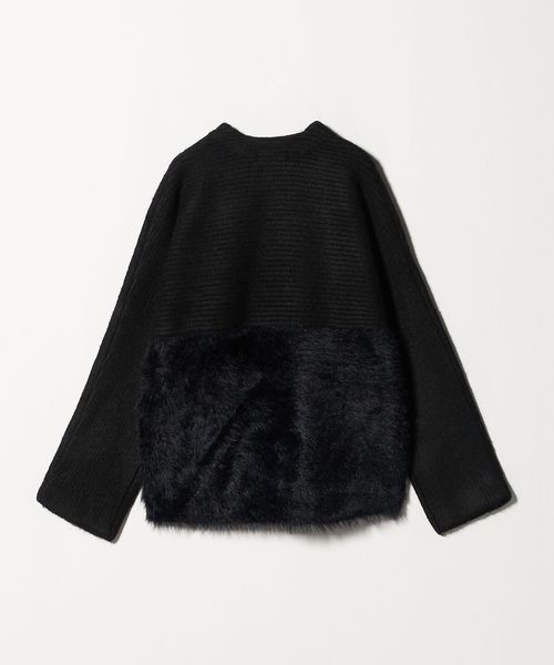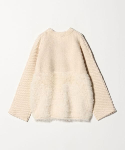 上部分は片畦の凹凸ある編地を横使いし、下部分はふわふわのフェザーをあしらった、素材のコントラストが目を惹く一枚です。