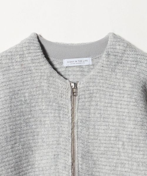 異なる編地で上下を切り替えたニットブルゾン。