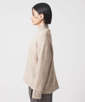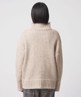 ざっくりとしたケーブル編みのハイネックニット。