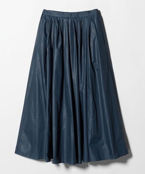 レザーライクな艶が特徴のチンツ加工のフレアスカート。