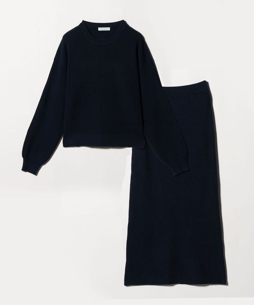 ニットプルオーバーとスカートのセットアップ。