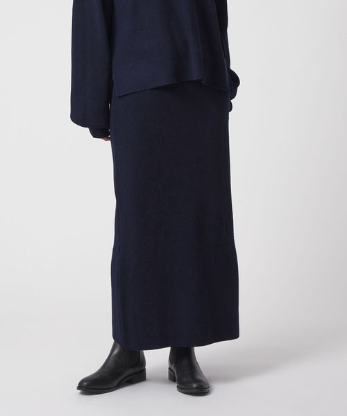 ニットプルオーバーとスカートのセットアップ。