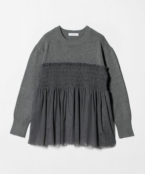 ニット部分はチュールよりも短めに設定しているので、ボトムに重ねた際にチュールの透け感を楽しめます。