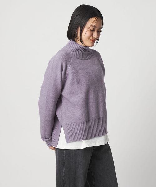 ふわっともっちりとした風合いが心地よい、シンプルなハイネックニット。