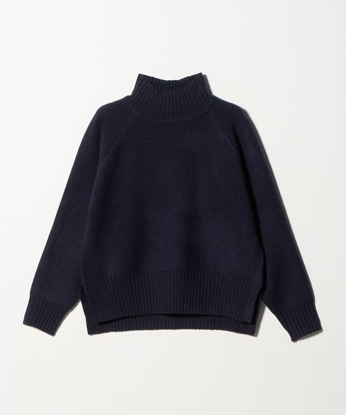 ふわっともっちりとした風合いが心地よい、シンプルなハイネックニット。