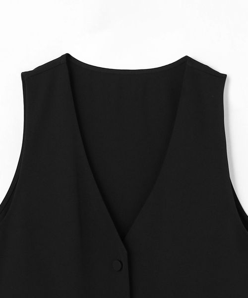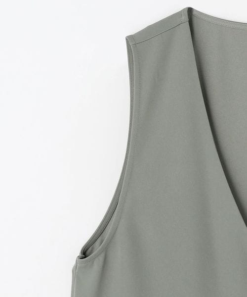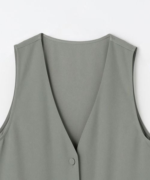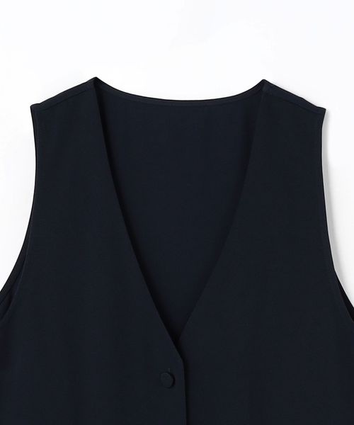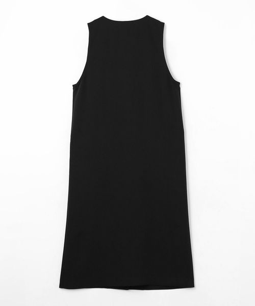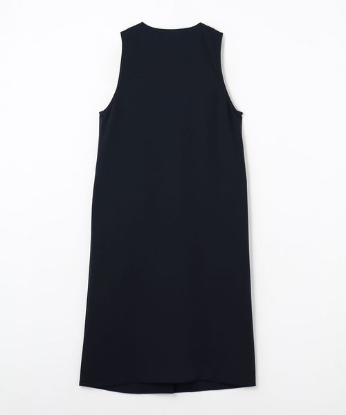 すとんとしたストレートシルエットに深めのVネックとフロントのくるみボタンが落ち着いた印象で、大人のオフにぴったりです。