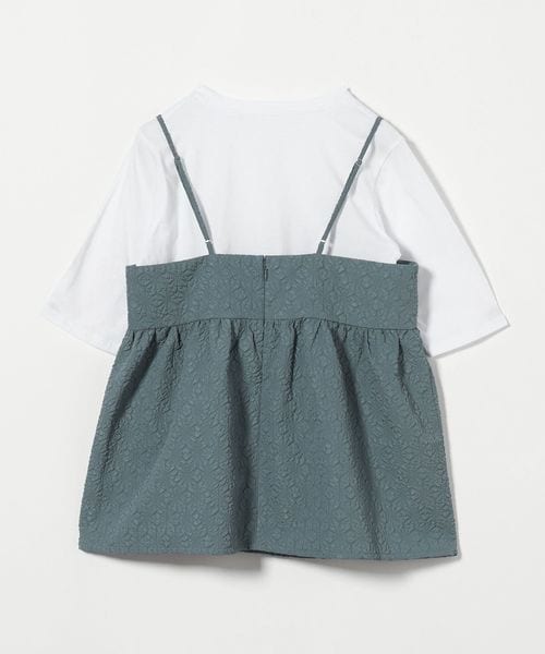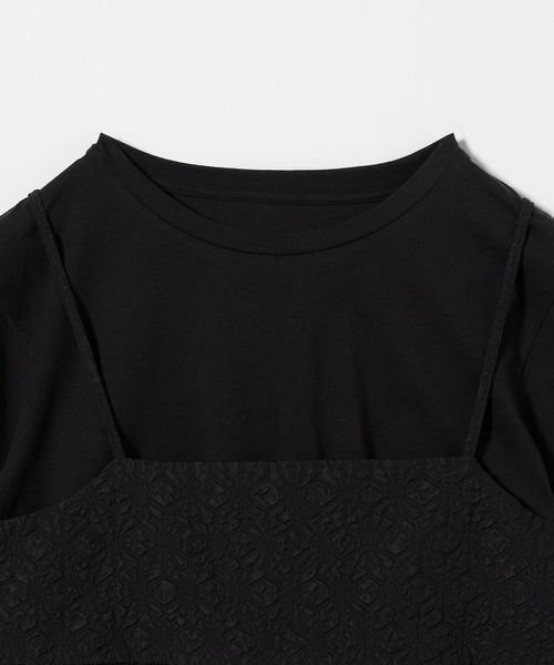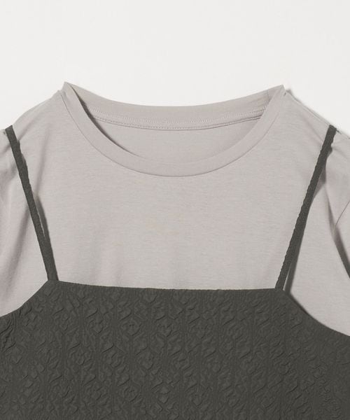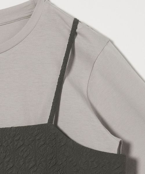 ふくれジャガード素材のペプラムキャミとインナーのTシャツをセットにしました。