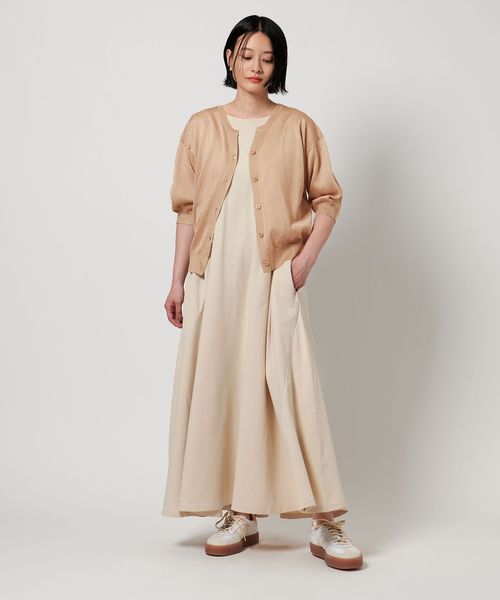 タンクトップにさらっと羽織ったり、ノースリーブのワンピースに合わせたりと着回しもしやすいアイテムです。
