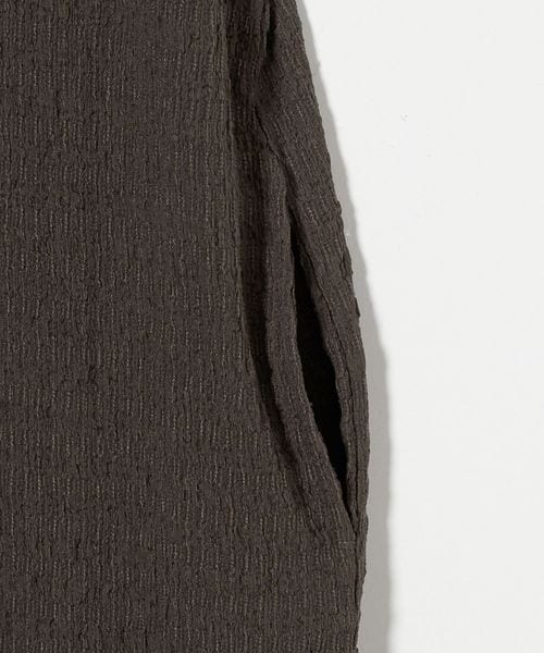 ほんのり光沢があるため程よくきれいめな印象ですが、ポリウレタン混で伸縮性もあリラックス感ある着心地です。