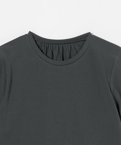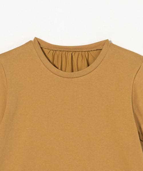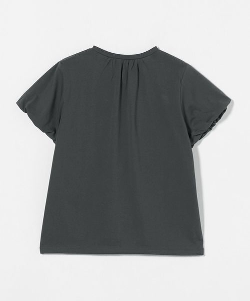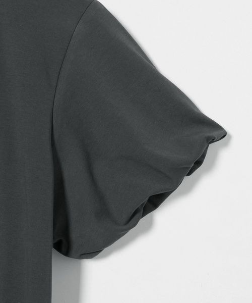 バルーンスリーブのクルーネックTシャツ。
