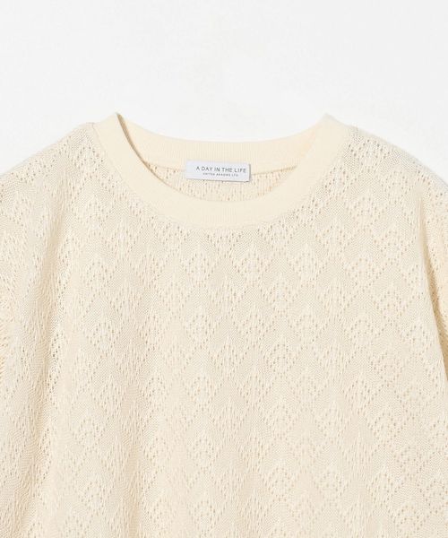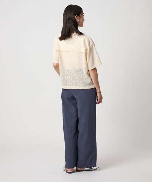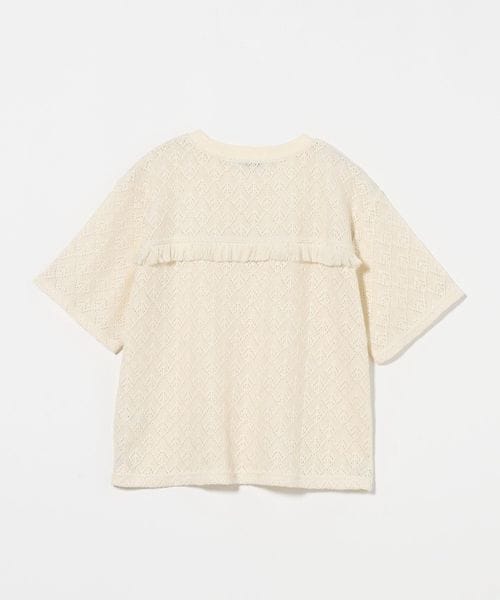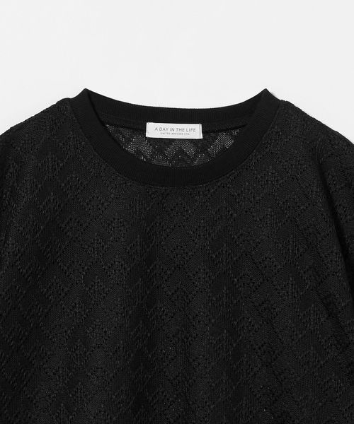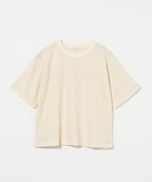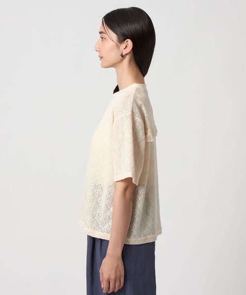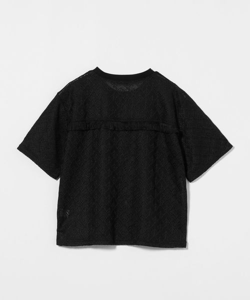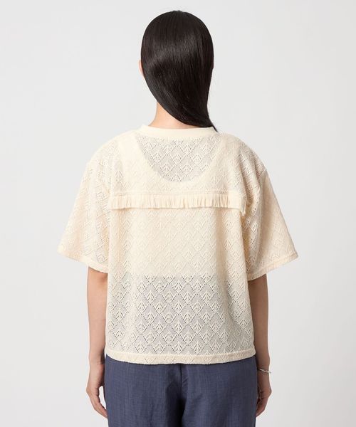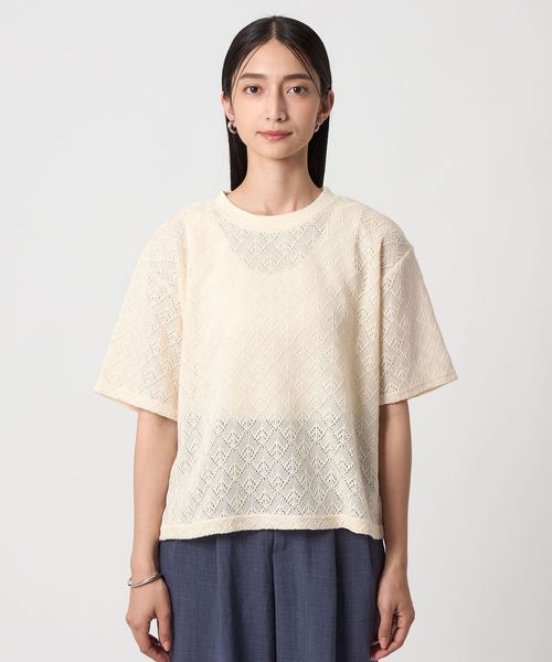 レース生地の半袖Tシャツ。