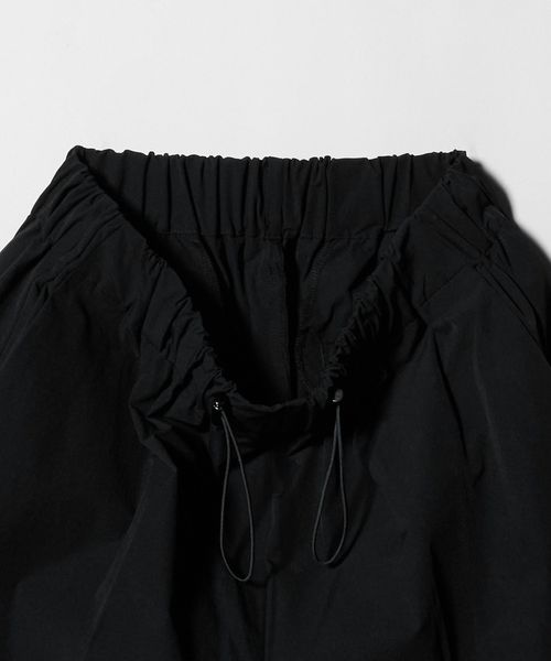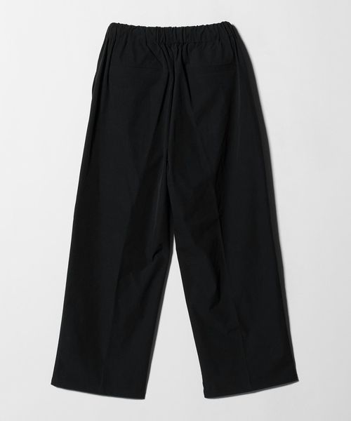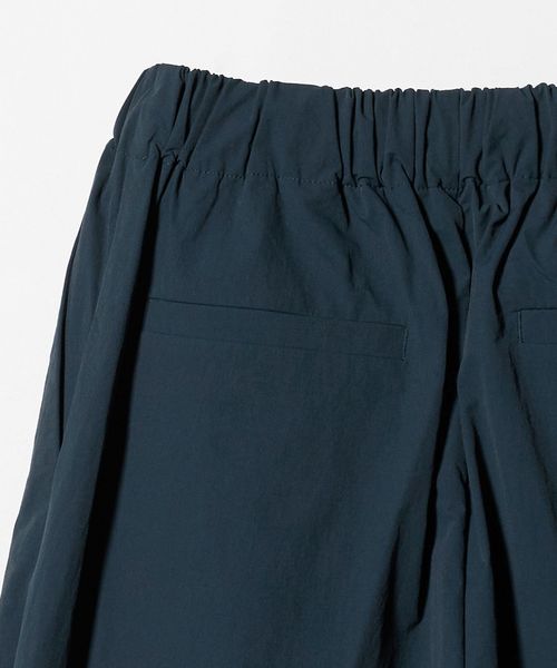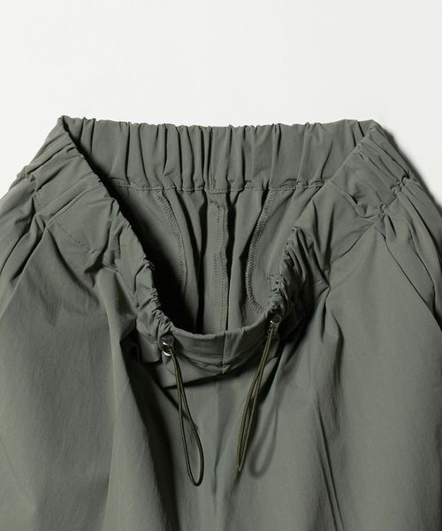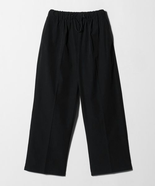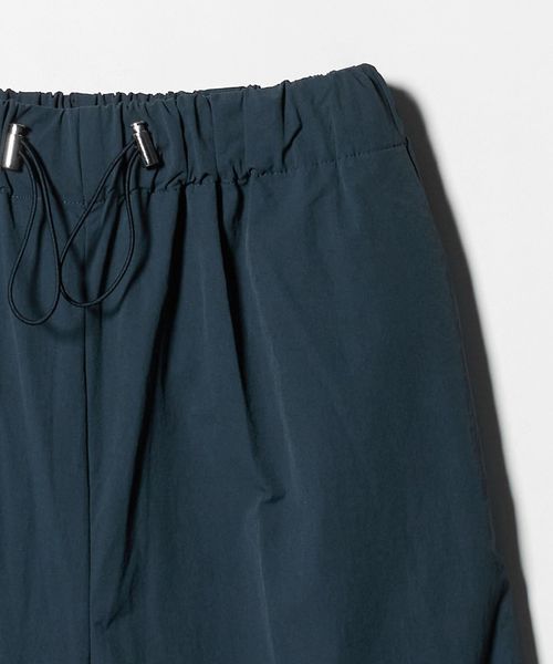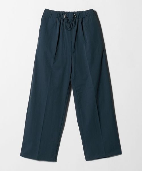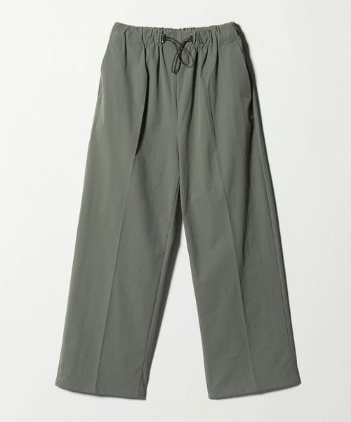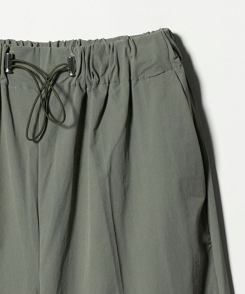 プレスライン入りのパンツはウエストのドロスト仕様がスポーティなアクセントに。