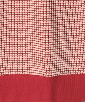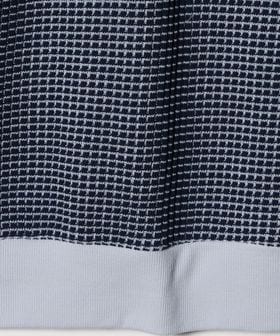 コットン糸とポリエステル糸を配色でワッフル編みにした素材。