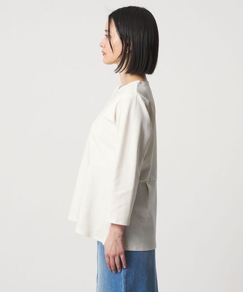 程よい開いたネックラインと、手首がのぞく7分袖が軽やかな印象です。