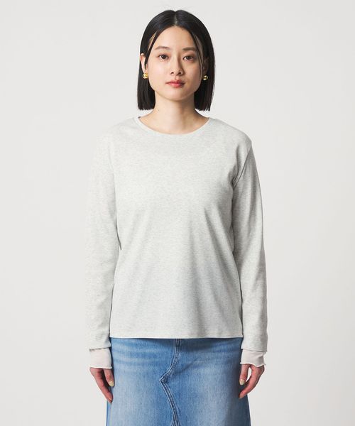 袖口にシアー素材を重ね、レイヤードしているような雰囲気に仕上げたカットソー。