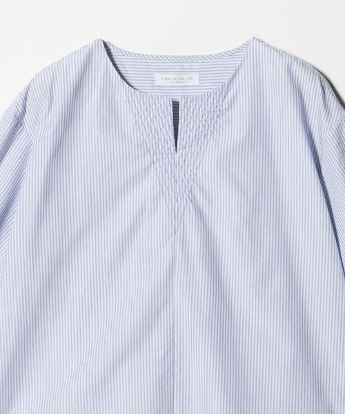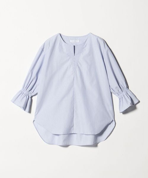 ステッチ キーネック キャンディスリーブブラウス 7分袖<A DAY IN THE LIFE>