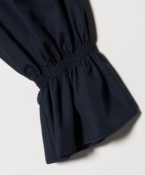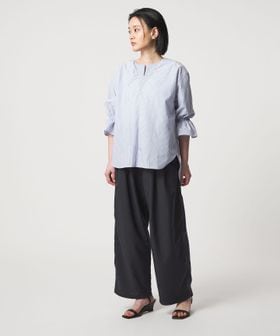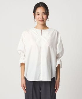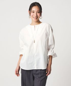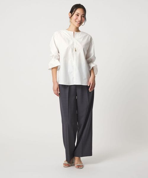 ステッチを入れたキーネックと、キャンディスリーブが華やかなブラウス。