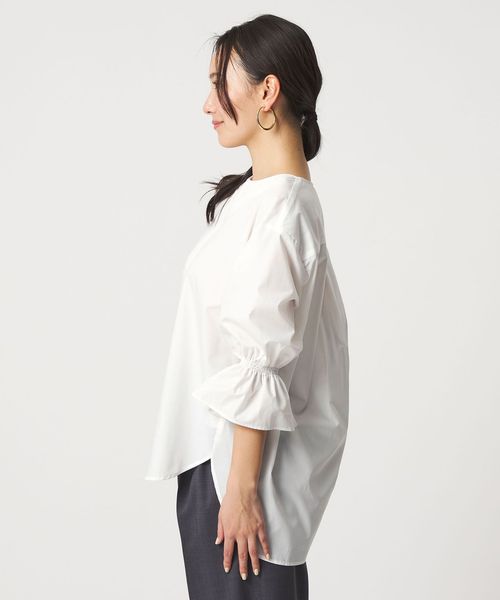 前後差をつけた裾や手首がのぞく7分袖で、抜け感たっぷりに仕上げました。
