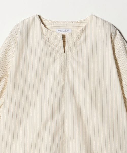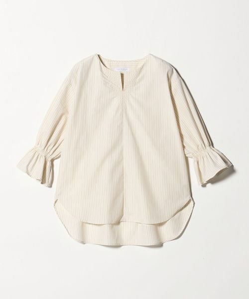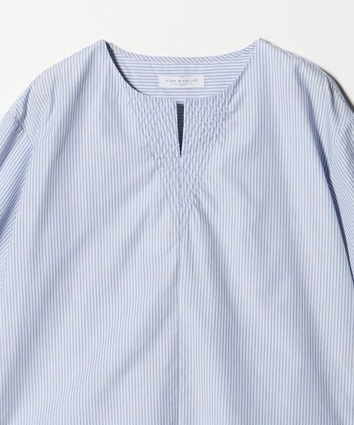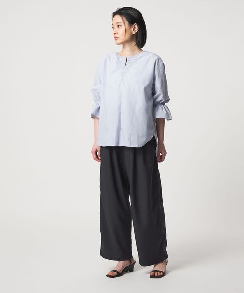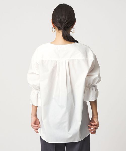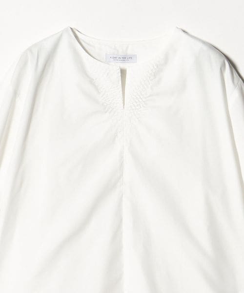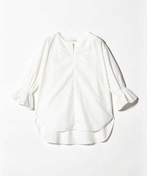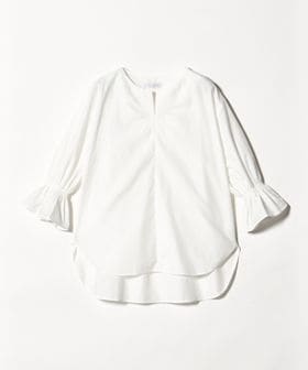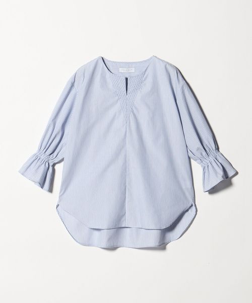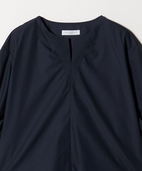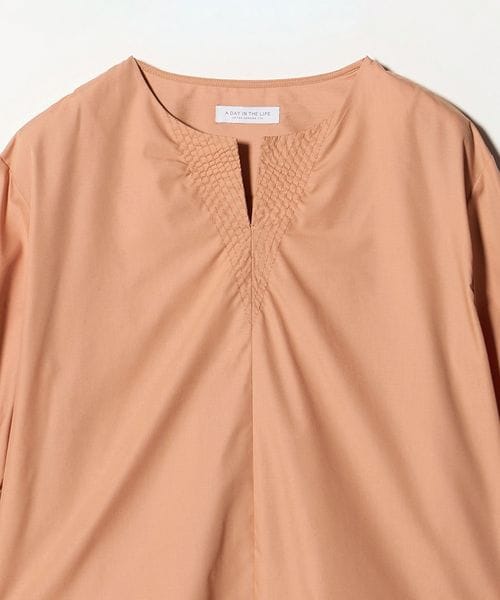 ステッチ キーネック キャンディスリーブブラウス 7分袖<A DAY IN THE LIFE>