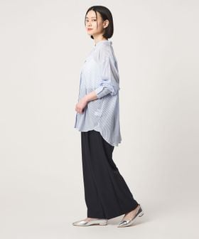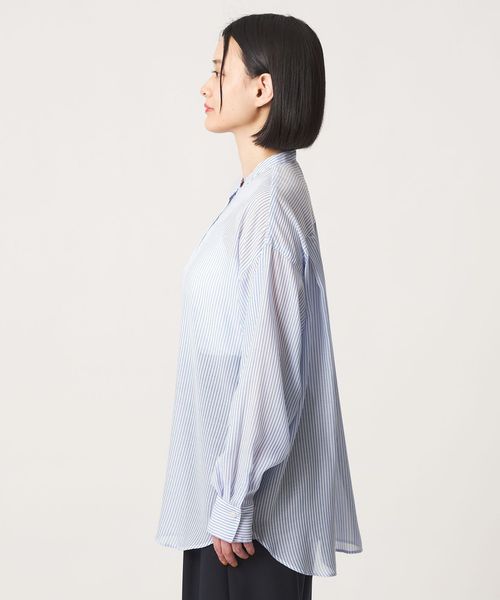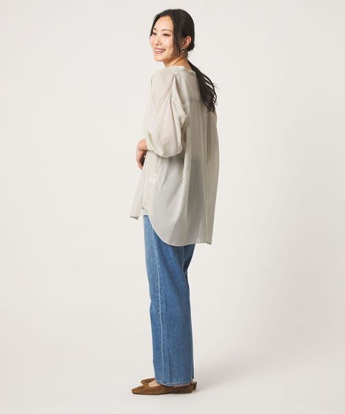 繊細な透け感が美しい、ストライプ柄のシャツ。