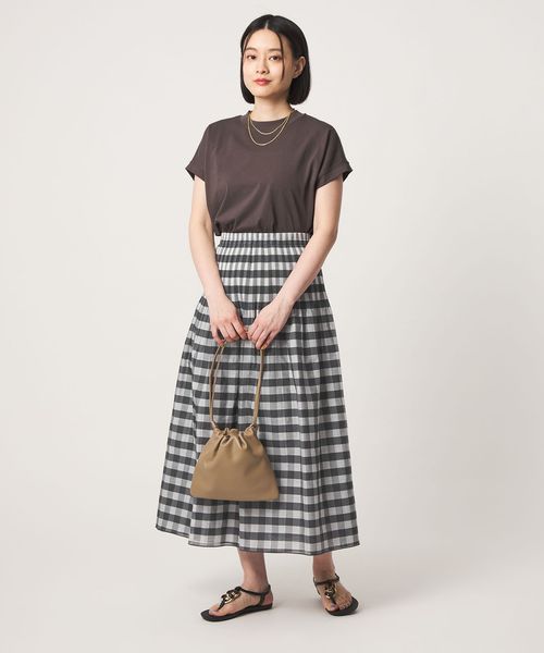 コンパクトなTシャツでスカートのボリューム感を引き立てたり、パリっとしたブラウスを軽くインして抜け感を楽しんでも。