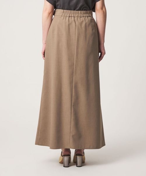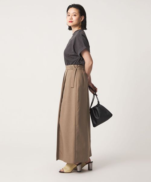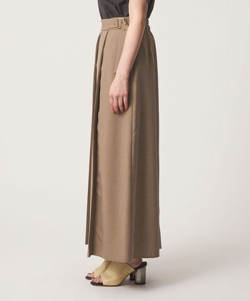 太めのプリーツとロング丈が縦のラインを強調する、ストレート寄りのフレアシルエットに仕上げました。
