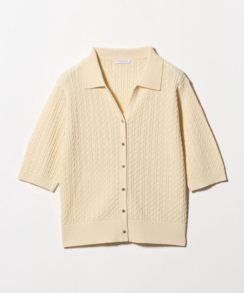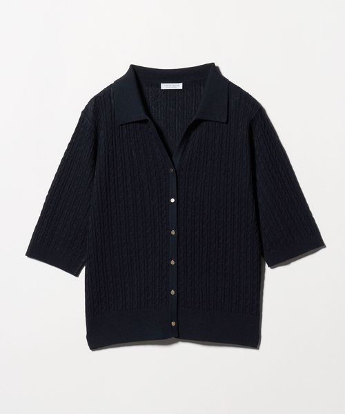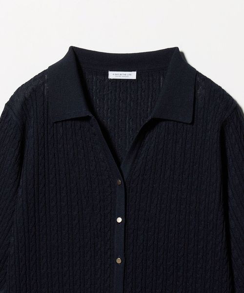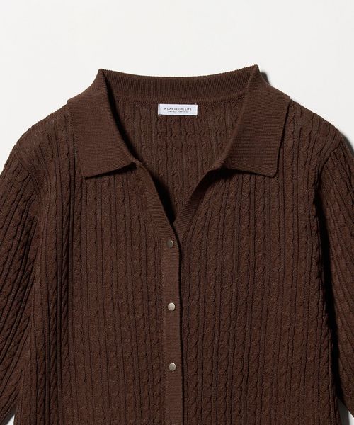 ケーブル スキッパー ポロカーディガン 5分袖 ‐ウォッシャブル‐<A DAY IN THE LIFE>