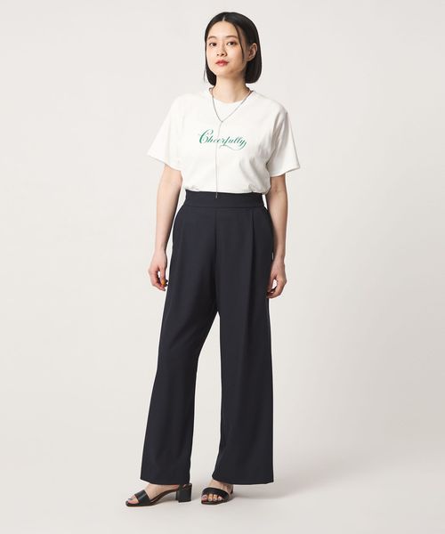 ハイウエストのスラックスにタックインしてベルトマークしたり、プリーツスカートなどフェミニンなスカートに合わせたり、程よくリラックス感のある大人カジュアルが完成します。