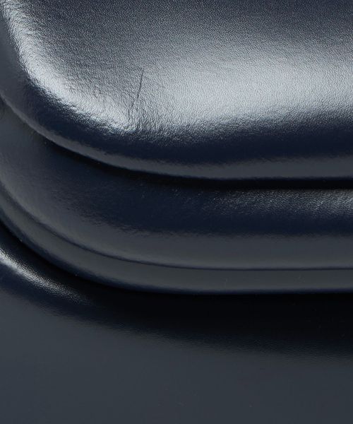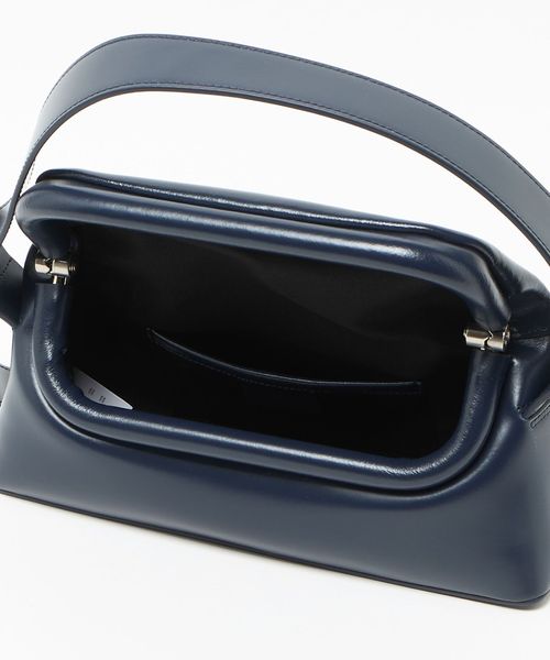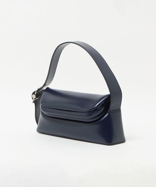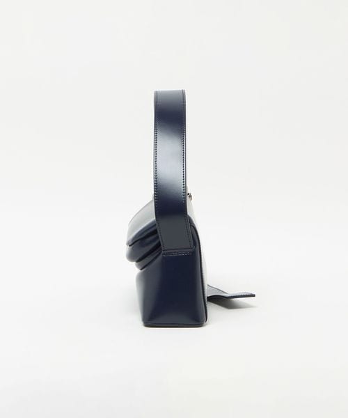 折りたたまれたボリュームのあるがま口のフラップ部分が特徴。