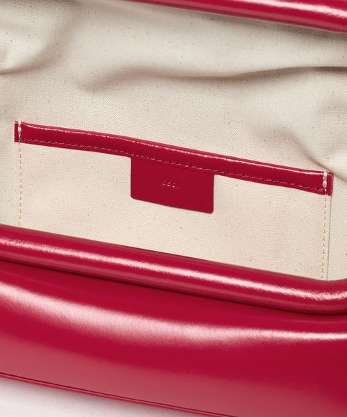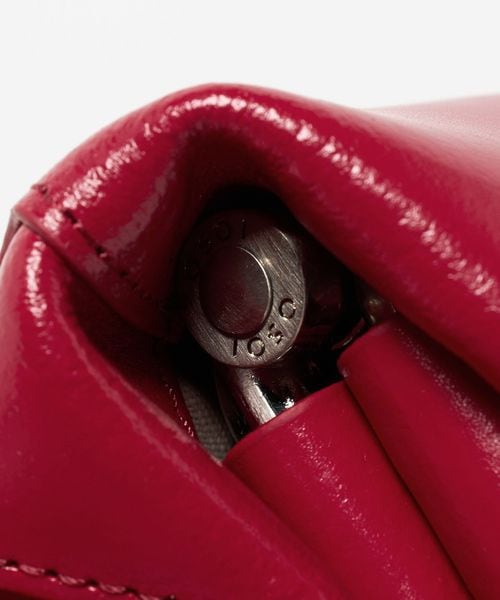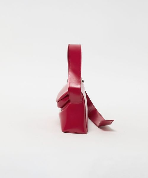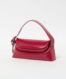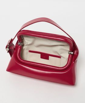折りたたまれたボリュームのあるがま口のフラップ部分が特徴。