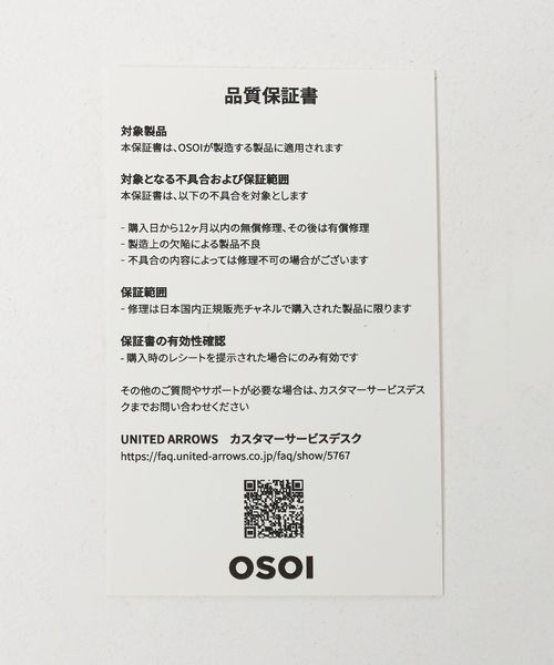 ブランド名の<OSOI>は日本語の「遅い」が語源で、少しゆっくりでも自分たちのペースを守りたい、上質なモノ作りをしていきたいという思いが込められています。