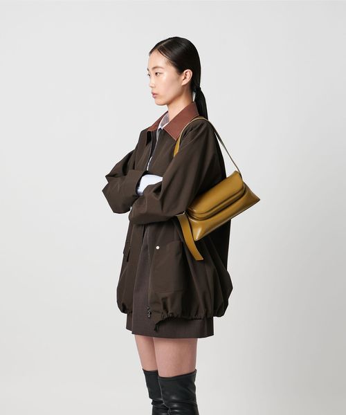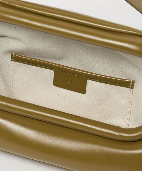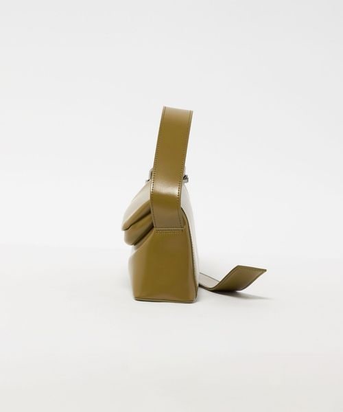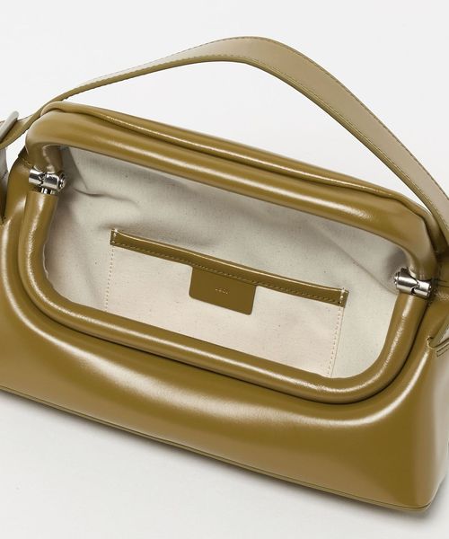 折りたたまれたボリュームのあるがま口のフラップ部分が特徴のデザインは、ワイドで物の出し入れがしやすく見ため以上に収納できます。