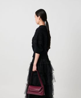 ベルトのバックルで長さを調整してハンドバッグとしても。