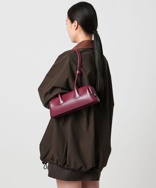 長めのストラップで肩掛けが様になるデザインでストラップ上部にはスナップ付きで収まりが良い仕様。