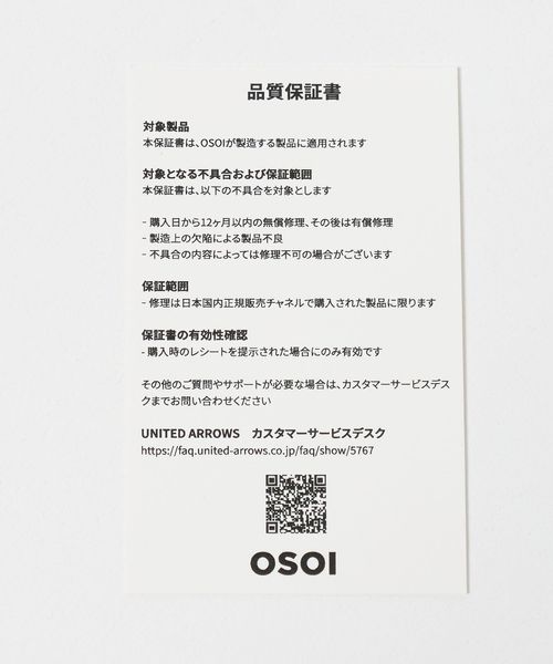 ブランド名の<OSOI>は日本語の「遅い」が語源で、少しゆっくりでも自分たちのペースを守りたい、上質なモノ作りをしていきたいという思いが込められています。
