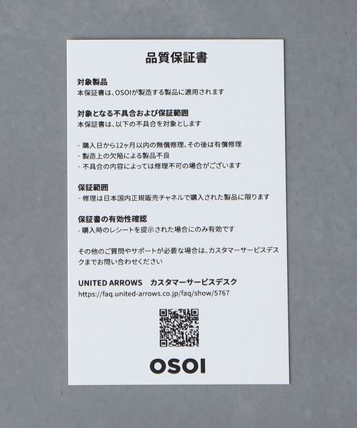 ブランド名の<OSOI>は日本語の「遅い」が語源で、少しゆっくりでも自分たちのペースを守りたい、上質なモノ作りをしていきたいという思いが込められています。