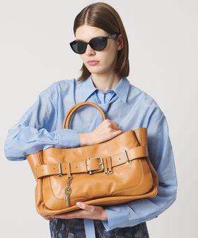 BROCLEシリーズの象徴である“バックル”を基にデザインされた、ベルトを留めたようなディテールが印象的なビッグサイズのトートバッグ。